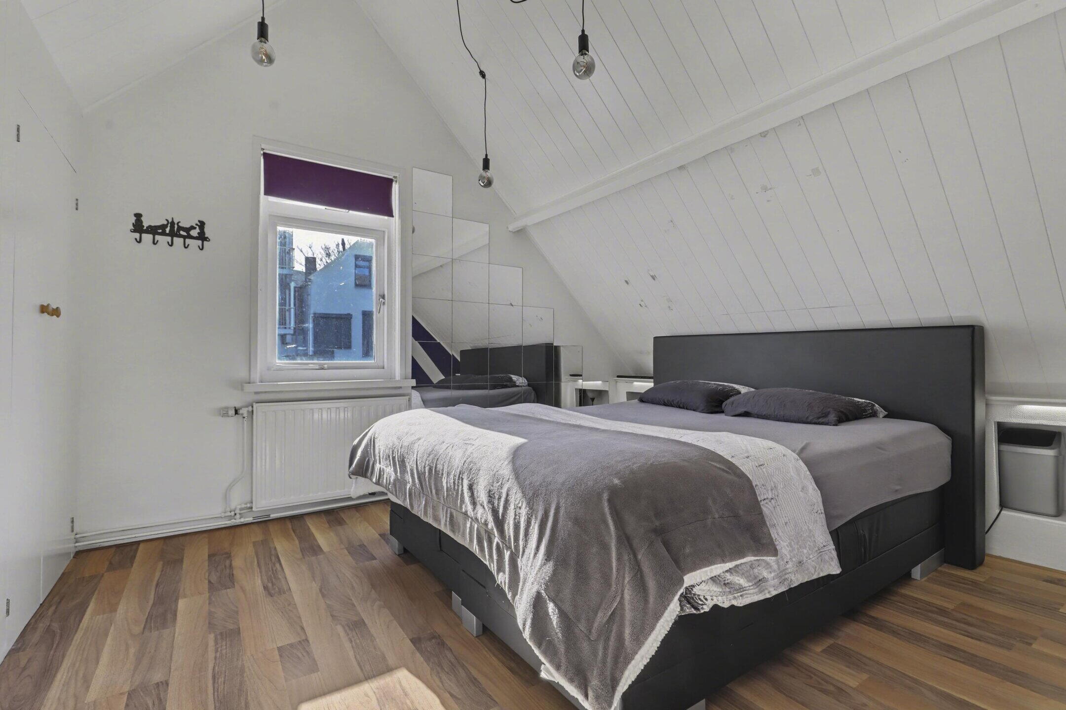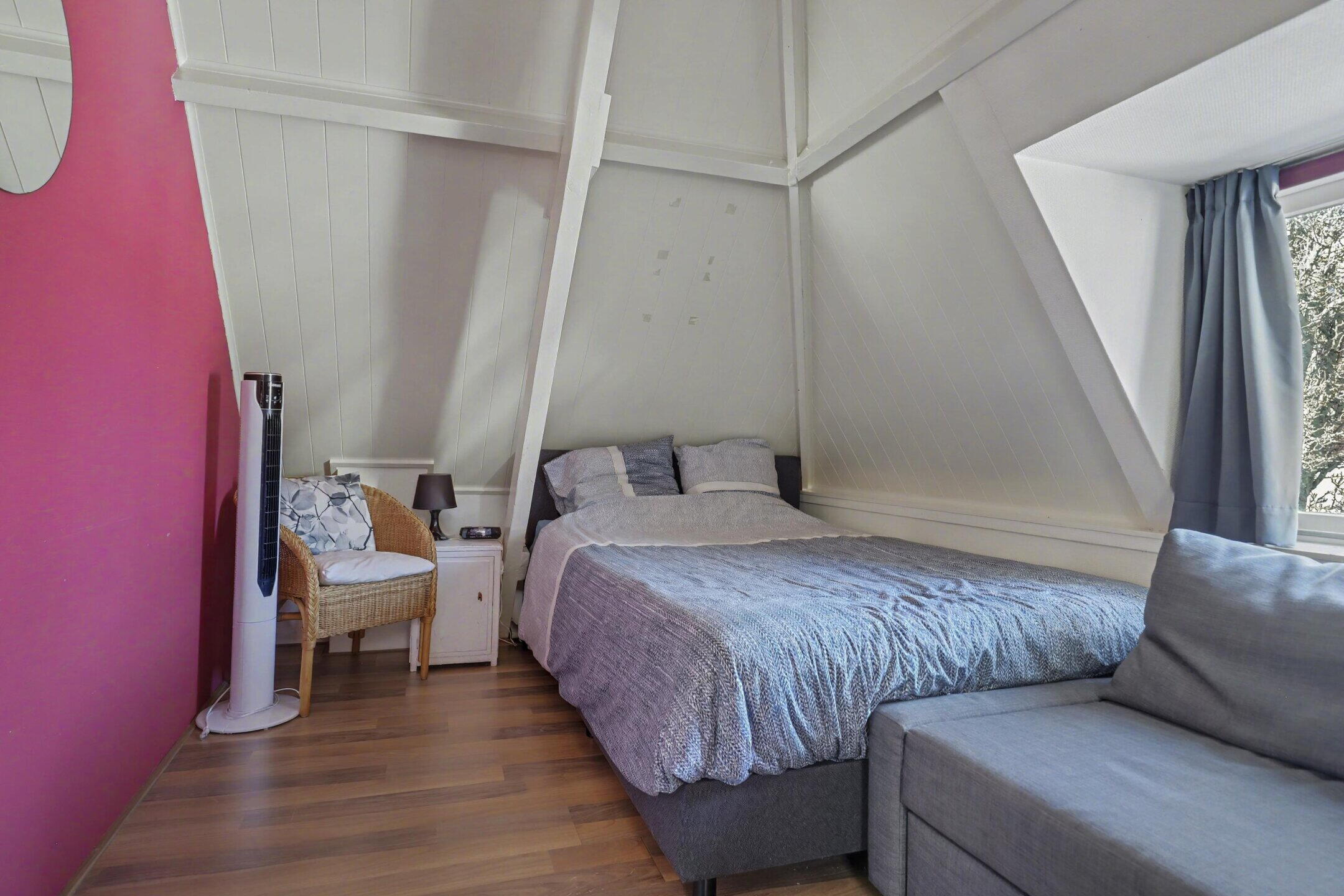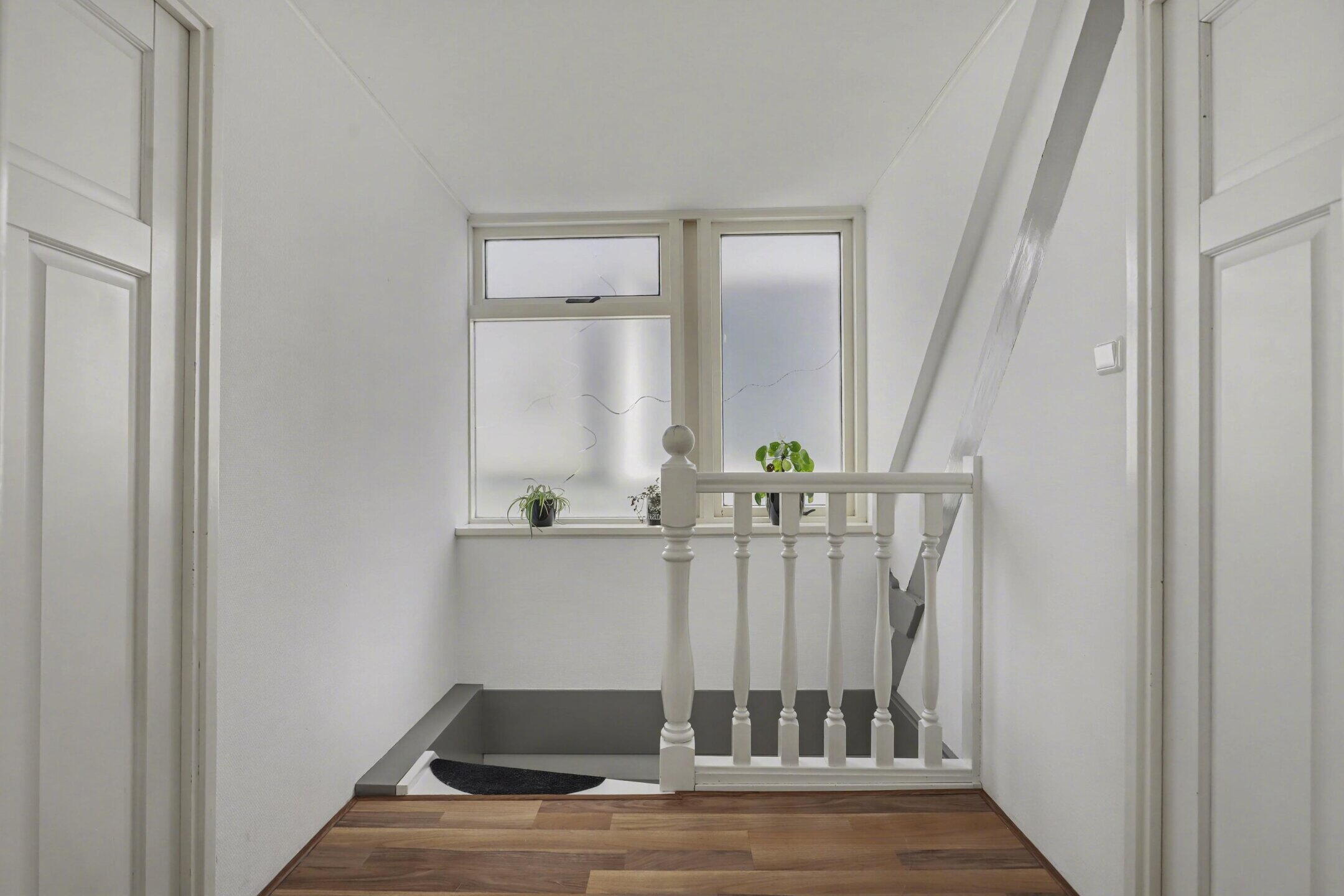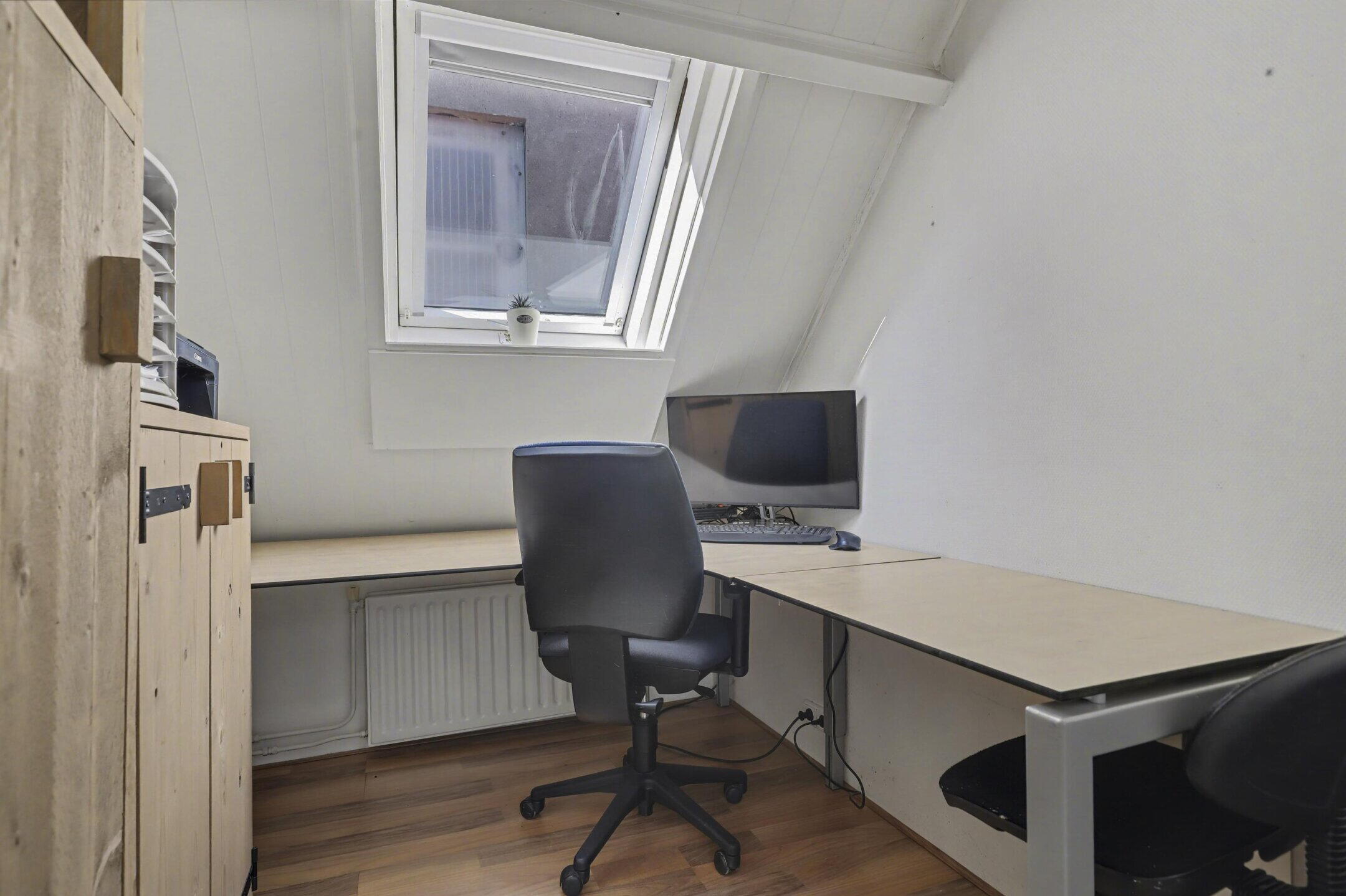 Verdieping: via een goed beloopbare trap kom je op de overloop van de verdieping. Een grote dakkapel boven de trap biedt meer dan voldoende daglicht. Een slaapkamer aan de voorzijde met twee dakkapellen en een kleine slaap-werkkamer met een dakraam. Aan de achterzijde een grote hoofdslaapkamer met een volledige kastenwand.